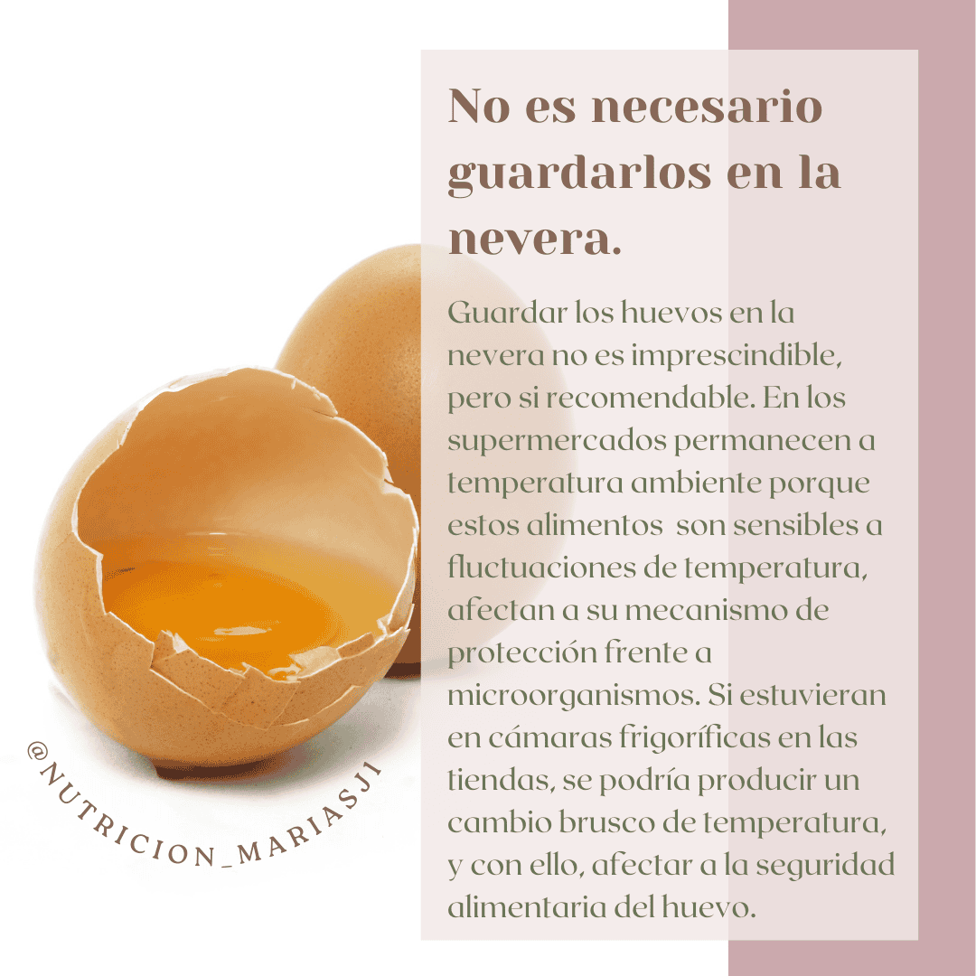 Guardar los huevos en la nevera no es imprescindible, pero si recomendable. En los supermercados permanecen a temperatura ambiente porque estos alimentos son sensibles a fluctuaciones de temperatura, afectan a su mecanismo de protección frente a microorganismos. Si estuvieran en cámaras frigoríficas en las tiendas, se podría producir un cambio brusco de temperatura, y con ello, afectar a la seguridad alimentaria del huevo.