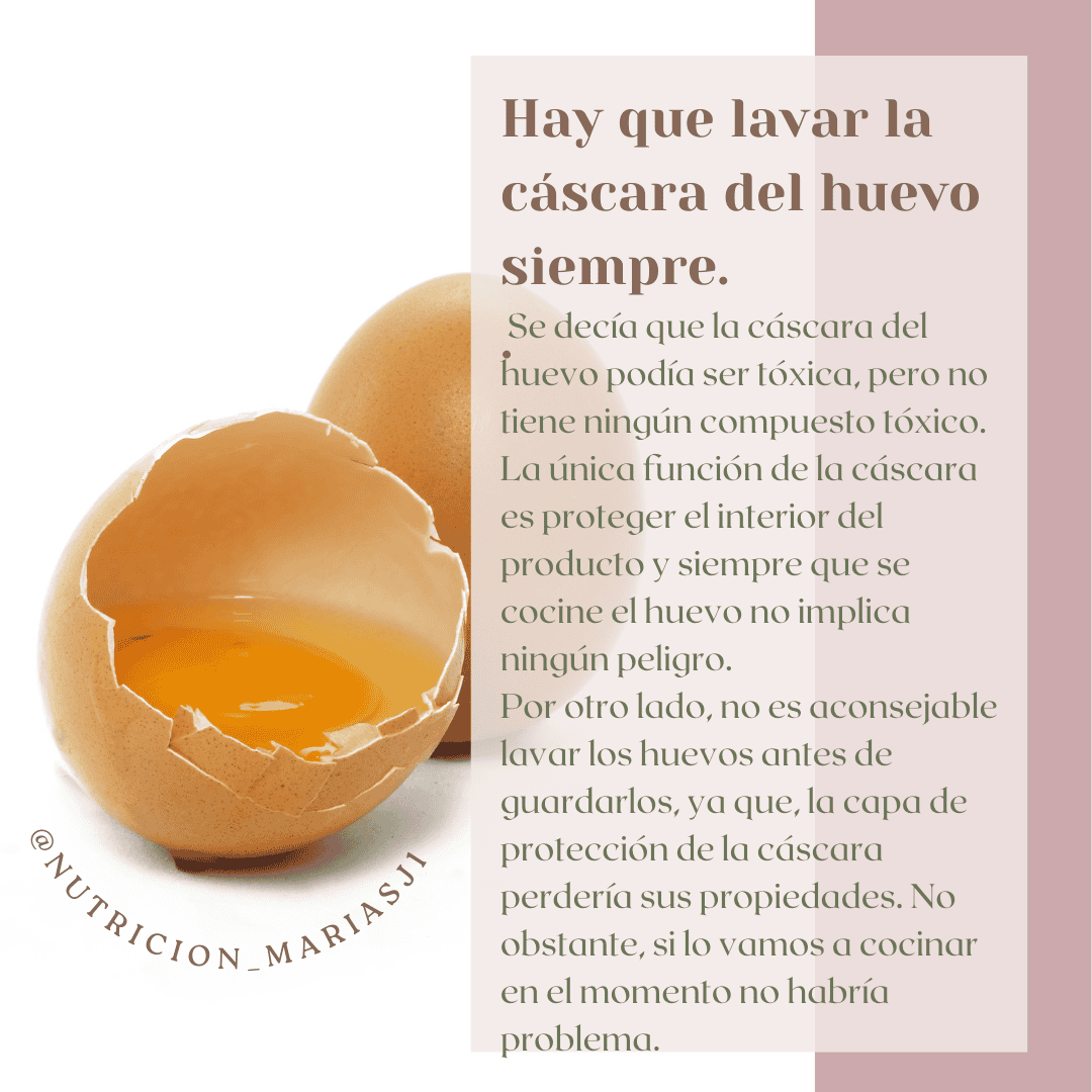 No es necesario lavar la cáscara del huevo. Se decía que la cáscara del huevo podía ser tóxica, pero no tiene ningún compuesto tóxico. La única función de la cáscara es proteger el interior del producto y siempre que se cocine el huevo no implica ningún peligro, ya que, sí que puede estar sucia o estar contaminada con Salmonella.
