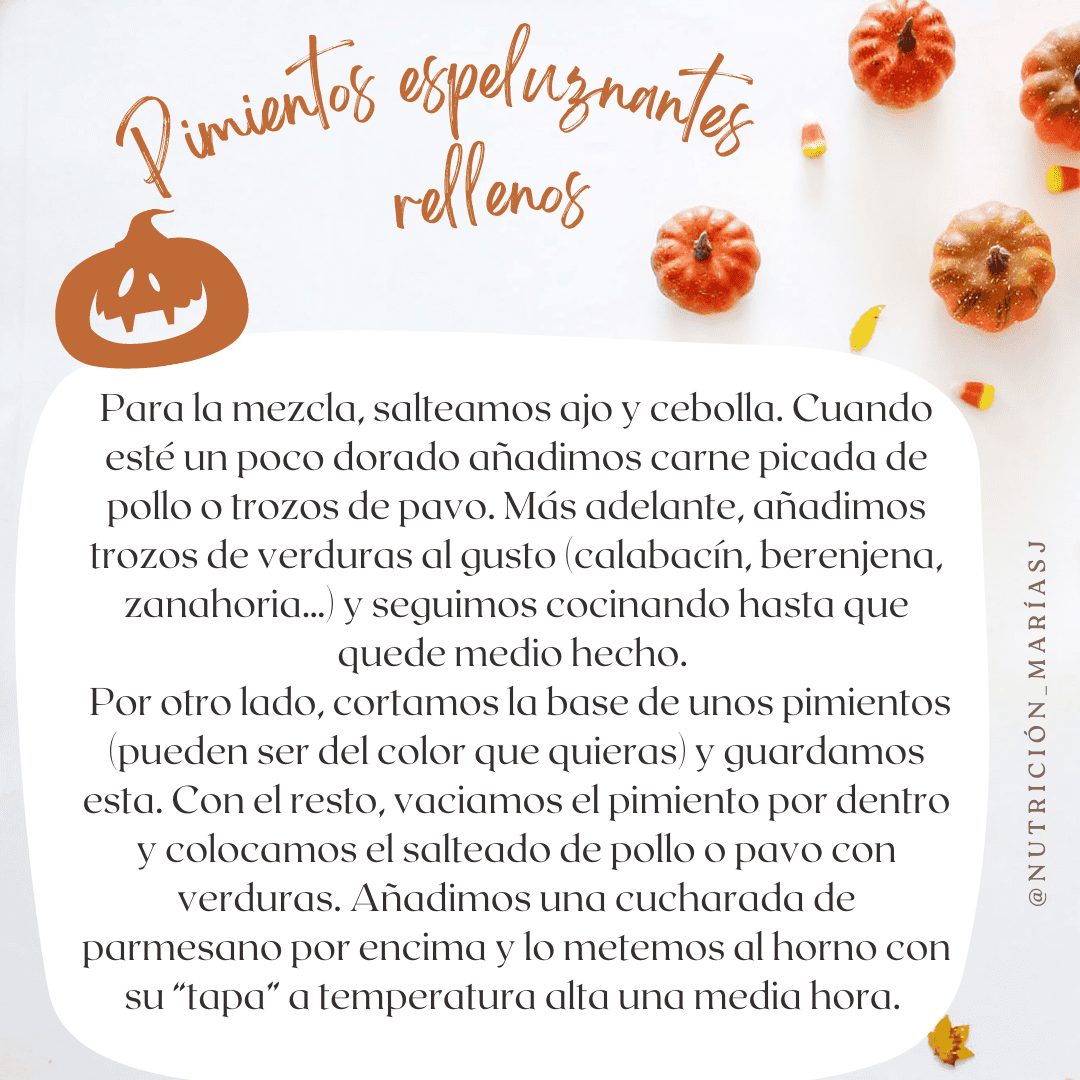 - Pimientos espeluznantes rellenos de pavo o carne picada de pollo y vegetales.